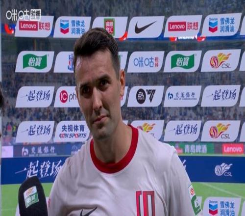 直播吧09月21日宣 本轮中超,成都蓉城客场1-1读秒绝平上海申花,赛后绝平功臣周定洋接受场边采访。