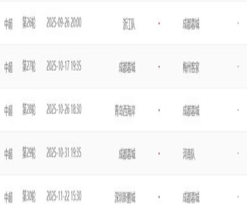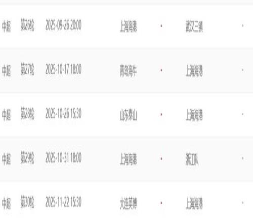 中超前4球队剩余赛程:海港将客战山东泰山,蓉城不遇强队