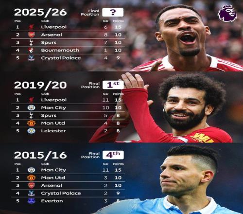 英超历史第三次出现5轮过后领头羊领先5分,利物浦独占2次