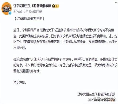 辽宁男篮:关于“辽篮俱乐部拟出售球队”等相关言论均为不实信息