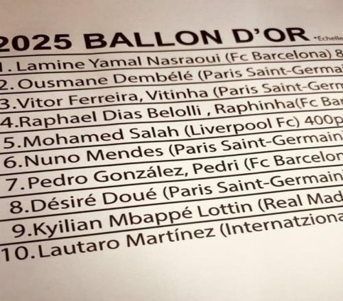 目前,网上已流出一份2025金球奖排名名单,亚马尔力压登贝莱获奖。