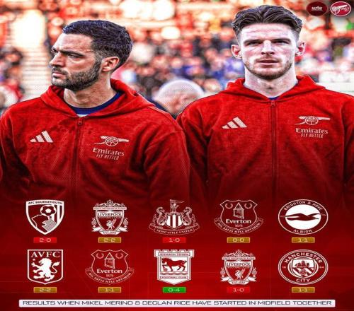 不搭梅里诺和赖斯在中场搭档首发的10场比赛阿森纳只赢1场