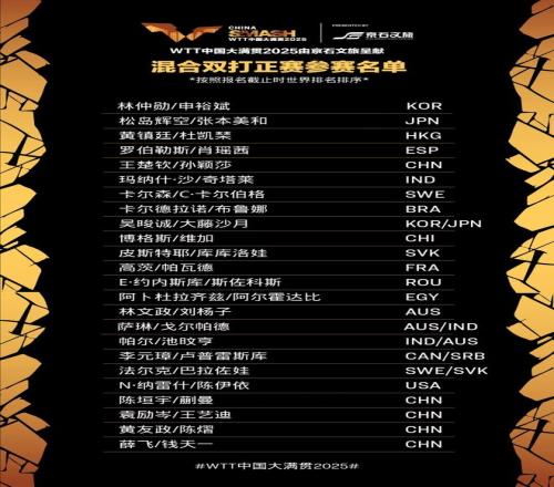 WTT中国大满贯2025正赛将于9月28日打响,正赛抽签仪式将于9月26日下午举行。男、女单打正赛还有8个席位将通过9月25日至27日进行的资格赛决出。