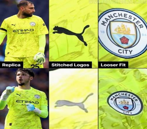 同一家媒体报道,在曼城1-1战平阿森纳的比赛中,多纳鲁马再度选择了一件盗版球衣,这件球衣明显比正版球衣更加宽松,而且许多细节都与正版球衣不太相同。