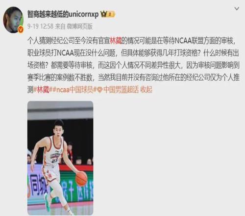 确认了!林葳NCAA球队!中国男篮第一得分手