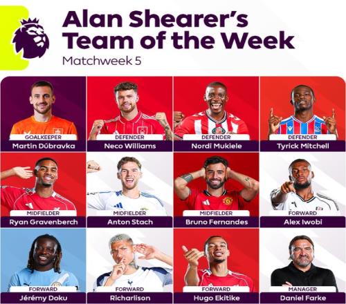 阿兰希勒评英超第5轮最佳阵:利物浦两人入选,B费在列