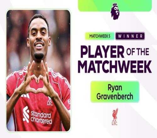 德比战传射建功!官方:赫拉芬贝赫当选英超第5轮最佳球员
