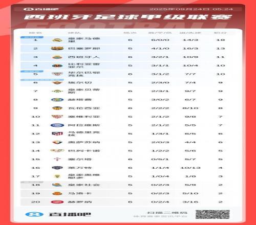 势不可挡!西甲积分:皇马开季6轮全胜轰14球,先赛5分领跑