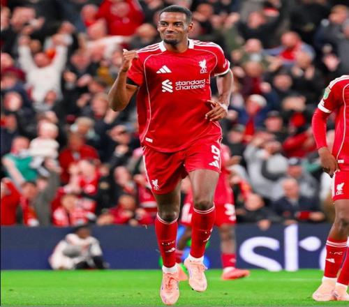 这是伊萨克代表利物浦打进的第一球,伊萨克滑跪庆祝,队友们纷纷上前和他击掌拥抱。