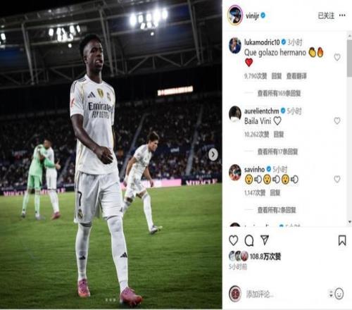 老师的认可!莫德里奇社媒留言称赞维尼修斯:多么精彩的进球