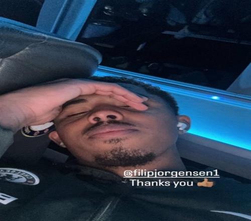 赛后,福法纳在社媒上晒出自己一脸无奈的表情,并调侃误伤自己的队友约根森:@约根森,谢谢你