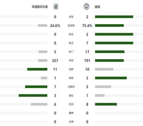 第74分钟曼城发起了一连串攻势,为球队首开纪录的福登,送出一脚斜塞,萨维尼奥在大禁区左侧用一脚爆射轰开了哈德斯菲尔德的球门,将领先的优势扩大到了2球,比赛最后时刻,主队本有机会扳回一球,可惜运气不佳,反击中的远射击中门柱被弹出。