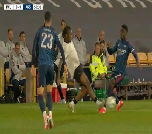 直播吧09月25日宣 联赛杯第3轮,阿森纳客战英甲球队维尔港。50分钟,萨卡被对方球员蹬踏,痛苦倒地。缓了一会儿,萨卡继续比赛。