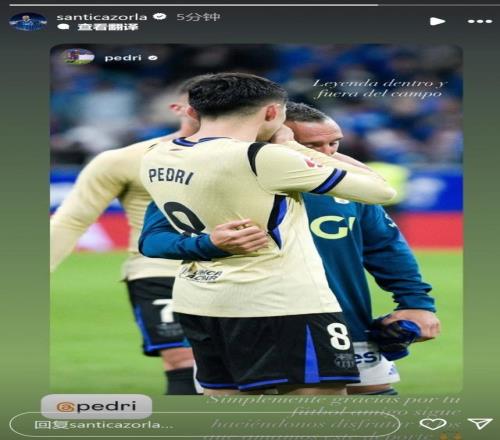前辈的认可!卡索拉晒与佩德里合照:让我们继续享受你的足球
