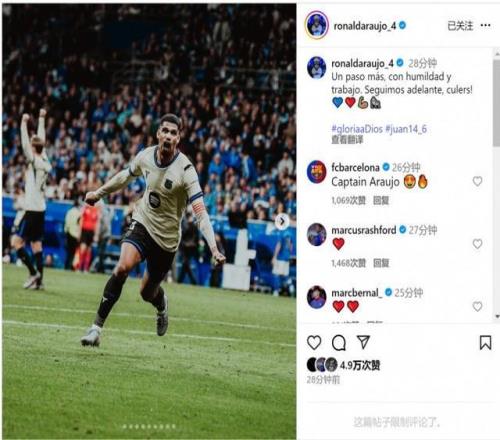 头球破门!阿劳霍社媒:我们怀着谦逊又迈出一步,继续前进!
