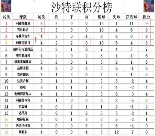 积分榜方面,布赖代合作今天赢球后,暂时追上利雅得胜利和吉达联合,净胜球劣势排在第3。利雅得新月先赛赢球后,2胜2平4轮不败,差利雅得胜利1分,暂时升至第4,4连败的阿科多继续垫底。