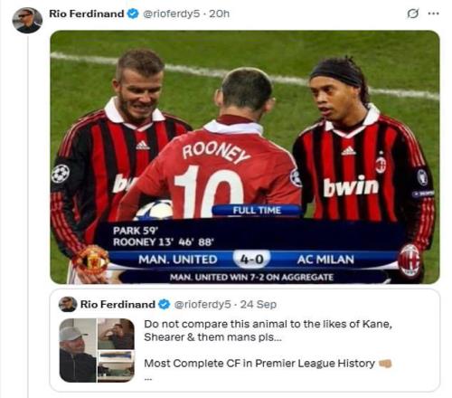 费迪南德晒鲁尼欧冠对米兰时比分图以表称赞,但这张图是P的
