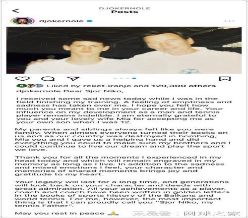 德约科维奇深情悼念他的“网球父亲”