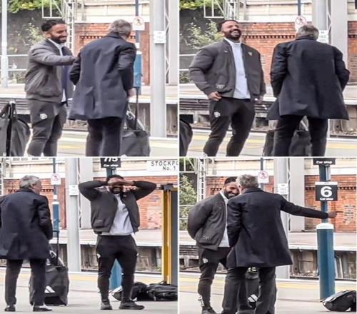 聊啥呢阿莫林等待去伦敦的火车时和足球总监相谈甚欢