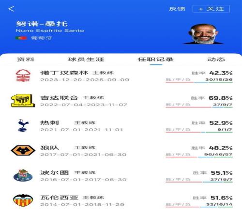 直播吧09月27日宣 官方消息,前森林主帅努诺执教西汉姆联,接班波特。双方签约三年。 【官方公告】 西汉姆联足球俱乐部荣幸地宣布任命努诺·埃斯皮里托·桑托为俱乐部新任男子队主教练。 努诺与铁锤帮签署了一份为期三年的合同,他执掌的首场比赛将是周一晚上我们客场挑战埃弗顿的英超联赛。 他来到伦敦体育场时已积累了极为辉煌的执教生涯,最近一次是带领诺丁汉森林队通过英超第七名的成绩获得欧战资格,并闯入上赛季足总杯半决赛。 现年51岁的努诺无论是作为球员效力波尔图足球俱乐部时期,还是作为教练执教狼队和沙特职业联赛俱乐部吉达联合期间,都曾多次赢得联赛冠军和杯赛荣誉,是现代足球界最受尊敬的教练之一。 努诺将其卓越的执教能力、战术智慧以及领导才能带到了西汉姆联,并期待着在东伦敦立即投入工作。 "我非常高兴能来到这里,并为代表西汉姆联感到无比自豪,"他表示。"我的目标是全力以赴激发球队的最大潜力,确保我们尽可能具备竞争力。工作已经启动,我期待迎接前方的挑战。" 这位出生于圣多美的主教练已于周六下午在拉什格林训练基地带队训练,为周一晚上前往希尔-迪金森球场的客场比赛做准备。 努诺在过渡期内将由青训学院教练马克-罗布森、史蒂夫-波茨、杰拉德-普伦德维尔和比利-莱平协助工作,关于其教练团队及后勤人员的进一步任命将适时公布。 西汉姆联全体成员欢迎努诺加入俱乐部,并祝愿他在酒红与蓝色的征程中取得圆满成功。 努诺-桑托是原诺丁汉森林主帅,由于和球队高层关系不佳,加上开赛英超3轮4分,努诺在9月初被诺丁汉森林解雇。 努诺2023年12月接手森林,当时球队排名英超第17名。在俱乐部因财务违规被扣4分的情况下,努诺率队成功保级。上赛季,努诺率队拿到65分,最终排名联赛第七获得欧协联资格,森林时隔30年重回欧战。7月份,水晶宫因违反多俱乐部所有权规则被降级至欧协联,森林递补获得欧联杯资格。 独家看英超就在咪咕 |