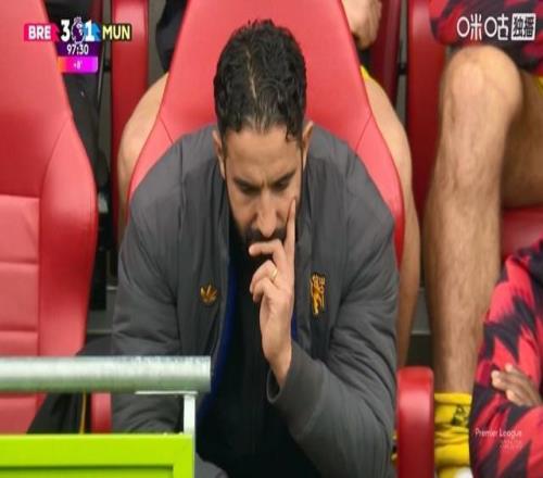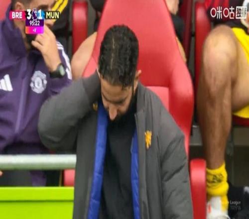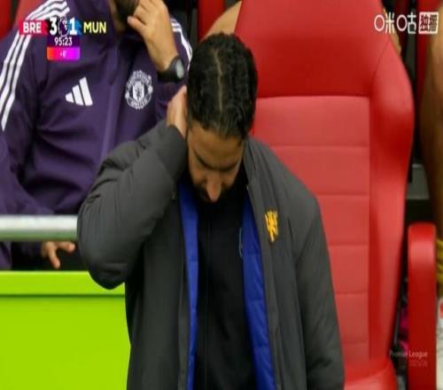 绝望了!曼联补时再被进球,阿莫林挠头后回到座位低头托腮沉思
