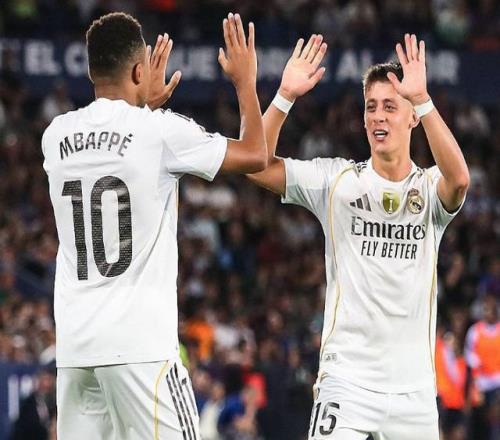 皇马这次配合,打得极为精彩、流畅。24分35秒,琼阿梅尼传球,进攻正式启动;24分41秒,姆巴佩的低射入网。短短6秒时间,琼阿梅尼、居勒尔、姆巴佩3人,没有任何拖泥带水,全都是一脚出球。姆巴佩展现自己出色的跑位、顶级的射术。 进球之后,姆巴佩一路狂奔庆祝!