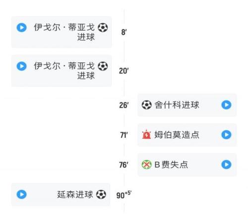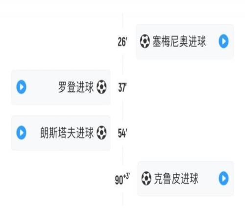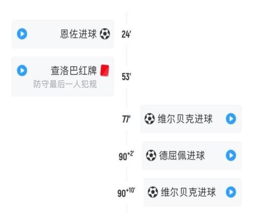切尔西1-3布莱顿,第92分钟德屈佩进球,第100分钟维尔贝克进球↓