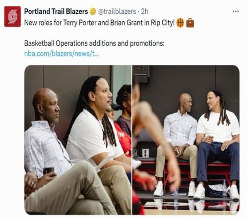 雷速体育9月28日讯 开拓者官方宣布球队增加了多名运营人员,其中包括了布莱恩·格兰特、特里·波特等多名昔日功勋球员。