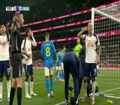 直播吧09月28日宣 英超第6轮热刺vs狼队第14分钟。库杜斯头球被扑至横梁,理查利森与其同时抢点时撞到头部,起身后看起来有点懵。