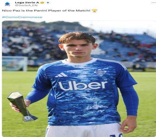 先拔头筹,意甲官方:帕斯当选科莫11克雷莫内塞全场最佳