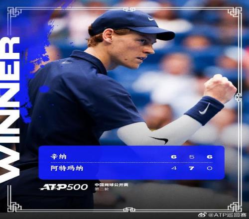 中网男单第二轮:辛纳2-1送蛋击败资格赛选手阿特玛纳,跻身八强