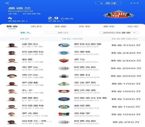 今年夏窗,作为升班马的桑德兰豪掷1.879亿欧,买入了10余名球员。新赛季征战英超的他们和上赛季判若两队,黑猫的首发,绝大多数都是今夏的新援,包括扎卡、萨迪基、勒费、塔尔比、阿德雷特、穆基勒、罗夫斯、马苏亚库等等。