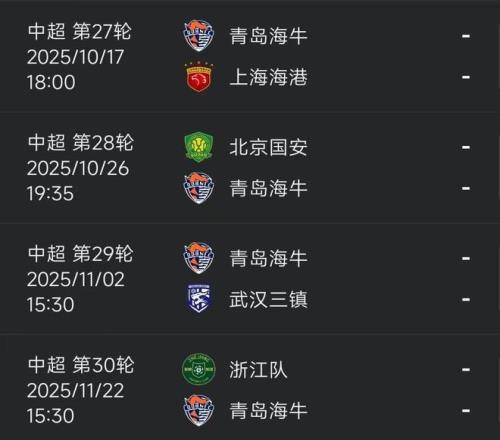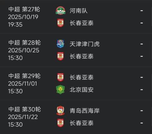 保级线18分!最后四轮长春将战天津国安,海牛将战海港国安