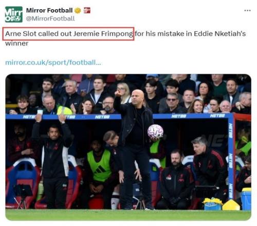 各大英媒齐点名:斯洛特指责的是弗林蓬,称他太激进导致被绝杀