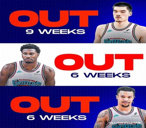 灰熊三大内线均是遭遇伤病侵袭,全明星球员贾伦因为脚趾伤势,需要缺席4-6周时间。伊迪在训练中再次扭伤左脚踝,已经接受手术,预计需要缺席6-9周时间。克拉克接受膝关节镜手术,需要6周后进行评估。