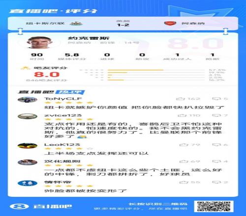 纽卡嫉妒你的颜值约克雷斯0球0助球迷评8分:支点作用明显