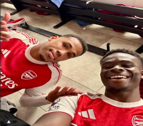 队友太给力,萨卡社媒晒赛后合照,加布里埃尔摊手