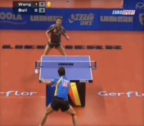 而大概也在菲力克斯见到陈剑,嚷嚷着要像他一样的打球的时间,世界另外一侧的齿轮也开始转动。 2008年,国际乒联修改了对于胶水的规则,用水溶性的无机胶水取代了可以让海绵充分膨胀的有机胶水。2014年7月,又正式将使用了一百多年的赛璐璐球,换成了全新的塑料材质乒乓球——两个规则变化都减弱了旋转这个传统直板打法安身立命的核心要素。 当时中国人并不特别担心:虽然马琳风格的传统直板看起来受到影响很大,但是王皓所代表的直板两面打法受的影响要小得多。大家都已经心照不宣的达成了共识,这才是中国直板的未来。 王皓生涯抵达成熟期之后,形成了一整套基于两面重炮进攻的,围绕高质量进攻的打法。早年并不以质量出名的王皓,成为国家队主力之后将击球质量提升到了某种匪夷所思的程度。 用方博的说法,练习中防守王皓的球“感觉球过来是实心的”。实际上,王皓也是方博和去过他直播间的所有国家队选手中公认质量最高的选手。 榜样的力量是无穷的。王皓树立的方向看起来是如此清晰可靠,直板的方向已经被前辈确立起来,后边大家只要跟着走就行了。 也是从这开始,起码在国家队层面上(实际范围可能要广泛深远得多),直板发展的方向就开始了微妙的偏差。 从现在的角度回看,中国队对直板两面打法的培养,很大程度上默认了王皓的很多天赋是理所当然,通过连续可以批量推广的,但王皓之所以能打出来,有几个被忽视的天赋因素: 首先是他反手绝伦的手感。从小就打直板两面打法的王皓,反手的感觉可以说是天生的。王皓的启蒙教练管这个打法叫AB面,因为当时甚至还没有直板横打这个叫法。用吴敬平指导的话说,王皓的反手吃球的感觉,就跟用手抓住球一样,想往哪扔往哪扔。 其次是他手腕上的天赋:王皓的手腕有两个通常来说彼此矛盾的天赋,一方面他的手腕在反手这边能打开到我模仿只能骨折的程度,另一方面他的手腕力量很强。中国队当时开发拧拉,最早的实践之一就是王皓正手短球处理不是那么好,蔡振华指导建议试试直接用反面台内去拉——跟直板横打一样,当时甚至还没有拧拉这个说法。 最后就是王皓增重之后的绝对击球质量——之前方博也说了,球像实心的,防守起来球板都被打透了,颤颤巍巍的。 中国队现在的直板选手——比如说正在参加中国大满贯的徐海东和薛飞——打法上受到王皓“质量”这个特质影响很大。拆开单个因素来看,薛飞和徐海东的身体素质和击球质量都不错,但是他们在反手手感,击球质量上和王皓的差距是非常明显的——甚至不止他们,就连樊振东,反手纯粹以感觉而论,都不如王皓。 一个直接的现象是,比赛中很多王皓打起来仿佛轻松随意的球,换到别人就是会出现一些莫名其妙的失误。质量打折扣,连接不流畅,总之就是仿佛各个环节都按照原版打造,结果还是臣妾做不到。 总体观感来说,直板打法的徐海东和薛飞,整体得分方式更依靠退台之后的主动相持和击球质量,速度*并不很快,前三板也不主打变化。 *注:乒乓球中速度指的是衔接速度,或者说节奏,不是一板打出的球的速度。 乒乓球中,直板打法是一种说法讲究,小技巧很多的流派。而其中门道最多就是握拍:传统上说,拇指食指握拍时候深浅程度,彼此的距离,相对的位置都有很多讲究——很多心得起码有50年以上的历史;后边的三个手指,因为现在出现了直板横打,又有了不同的说法。 现在中国队的直板,几乎是一致性的后边三个手指伸直,这样可以最大化正反手击球的质量——相对来说发球和短球的灵活性受一些影响。这也在一个侧面说明了中国队培养选手上的路径依赖:因为之前王皓打出来了,所以后续培养选手的时候,就约定俗成的走王皓的既定路线。作为一个表现,普遍的握拍很深,甚至徐海东尝试过把板子挫成一个铲子,来增加握拍深度,以加强力量: 而这里就是勒布伦们有所不同的地方了。 陈剑虽然对勒布伦影响很大,但是其实并没系统的执教过他。陈剑在法国的俱乐部生涯结束之后,就离开欧洲回国继续自己的教练生涯了。所以对于勒布伦来说,他的技术打法没有一条设置好的叫做“王皓”的路径,一切的标准都很简单,以我理解出来,打得出效果为准——没有教材,没有路径,只有很大的热情,和很强的主观能动性。 这种变化之一体现在握拍上。相比于中国选手大部分的后边三个手指伸直,菲力克斯的三个手指是蜷缩的,有点类似用那三个手指握住一个球。这种握拍方式最大化手腕的灵活程度,在前三板,发球,甚至反手上旋球都提供最大的精细程度,但相应的,击球绝对质量受影响,尤其是正手。 小勒布伦的握法:曲指 中国教练普遍教学的握法:手指伸直 菲力克斯的发球有些地方和陈剑当年非常相似:出手速度快,节奏有点诡异,同时长球发的非常突然,节奏很好。他发球引拍的时候甚至会把拇指挪开,以继续增加手腕活动的幅度和带来的变化。 而这里就体现出菲力克斯的第二个不同点。相比于中国选手习惯性的参考王皓两面重炮的打法,菲力克斯打从一开始就是更强调速度和压迫性,而非绝对质量。相比于两面高质量,他更擅长的是利用发球的速度和节奏变化牵制对手之后,用快节奏连续的反手压制对手——实际上勒布伦两兄弟都擅长利用发球,但是哥哥更多是发球手法繁多,配合不同套路;弟弟则是发球之后形成近台的快速