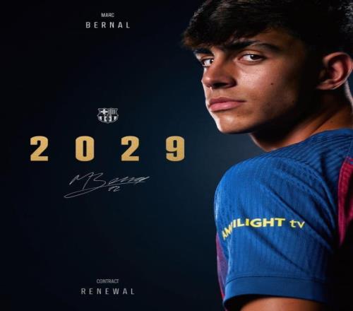 巴萨在官方公告中写道, “巴塞罗那足球俱乐部与马克·贝尔纳尔达成协议,他的合同续签至2029年6月。合同签约仪式本周一上午在俱乐部办公室举行,俱乐部主席拉波尔塔、第一副主席尤斯特以及足球总监德科一同出席。”