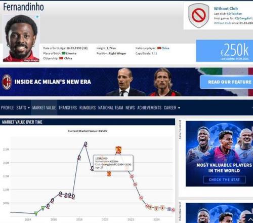 国足最失败归化:费南多身价已跌至25万欧,仍保留中国国籍!
