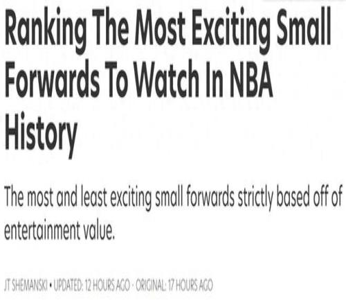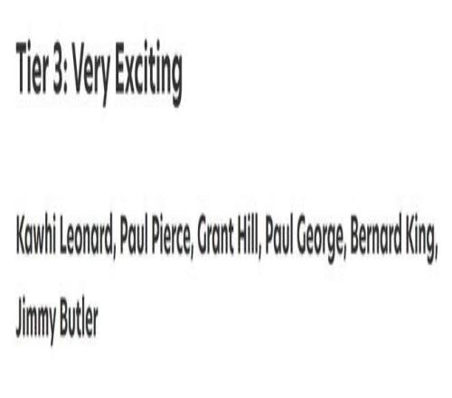 杜兰特二档!美媒公布NBA小前观赏性榜单:4人共享第一档乔治4档
