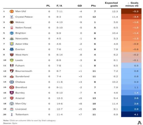 曼联其实没有那么糟他们的进球数本该是英超第一