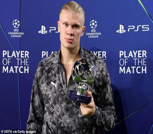 没赢球不开心,哈兰德领取全场最佳球员奖时笑不出来