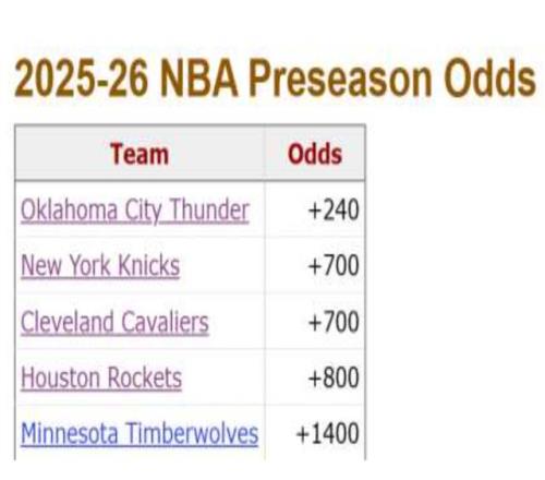 ESPN的冠军赔率:雷霆 +200,断层第一;