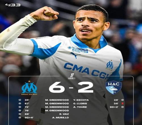 法甲第8轮比赛,格林伍德用一场载入史册的表演:单场狂轰四粒进球,帮助马赛在主场6-2血洗勒阿弗尔。在罗伯托·德泽尔比的带领下,马赛以1分优势力压巴黎圣日耳曼,登上法甲榜首,整个法国南部为之沸腾。