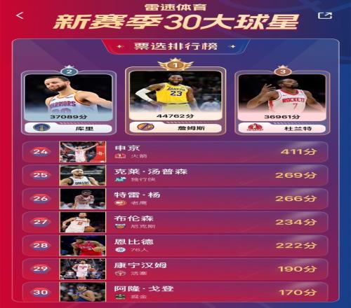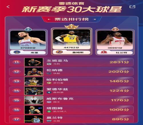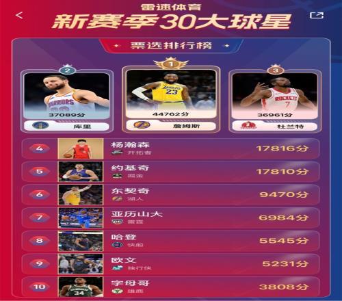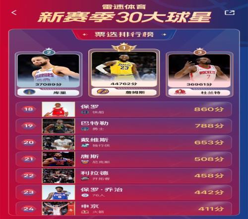 雷速NBA30大球星收官在即,为你喜欢的球星打上最后一Call