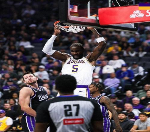 NBA常规赛正在火热进行中,湖人奔赴客场与国王展开对决。此役,勒布朗詹姆斯继续伤停,卢卡东契奇因为手指和左小腿挫伤缺战,海斯、克莱伯伤停,雷迪克使用了里夫斯、文森特、斯马特、八村塁与艾顿的首发阵容。穆雷、克利福德伤停,萨克拉门托的首发五虎是扎克拉文、德罗赞、小萨博尼斯、埃利斯与施罗德,威少、蒙克继续出任替补。两大劲旅,在此役上演了激烈厮杀。双方缠斗至比赛最后时刻,才得以分出胜负。 里夫斯51+11+9+6记3分创NBA历史第1神迹,还刷爆纪录,湖人险胜国王!威少18+6! 全场比赛回顾 首节开打,湖人在艾顿与八村塁的带领之下,连续冲击篮下拿分。拉文状态火热,他突破和外线进攻都很有成效,得以帮助国王紧咬比分。不过,紫金军团多点开花,还是得以占据场上主动权。首节打完,湖人以36比27领先。 八村塁抢下篮板球