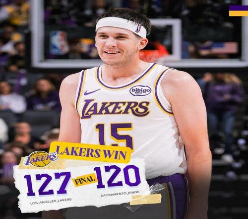 关键时刻,国王轰出了10比3的攻势,胜负悬念再起。关键时刻,艾顿拼下篮板球,里夫斯随后连续稳健罚球命中,帮助湖人就此收下了比赛。最终,紫金军团以127比120险胜对手。 两队数据 国王队,拉文24中12,三分球9中4得到了32分4板、德罗赞22中9贡献了21分6板3助、施罗德18中7,三分球9中3得到了18分2板12助的两双数据、蒙克9中5得到了15分1板2助2断2帽、萨博尼斯8中4得到了10分14板3助3断、埃利斯6分2板1助2断。 湖人险胜国王