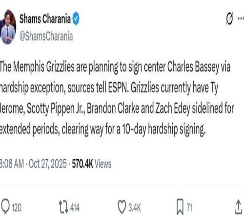 另外一支西部球队灰熊的状况则更为夸张,小皮蓬、克拉克、扎克伊迪与新援杰罗姆都确认将长期缺席。 这导致灰熊队不得不向联盟申请10天伤病特例,以签下查尔斯-巴西应对内线捉襟见肘的人员轮转空缺。