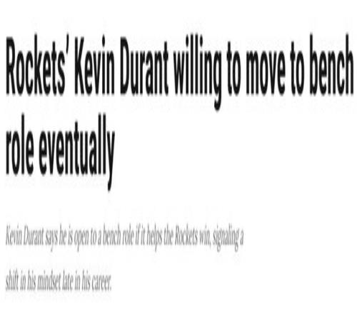 杜兰特:愿意为争冠球队打替补不觉得这种情况会发生但也能胜任